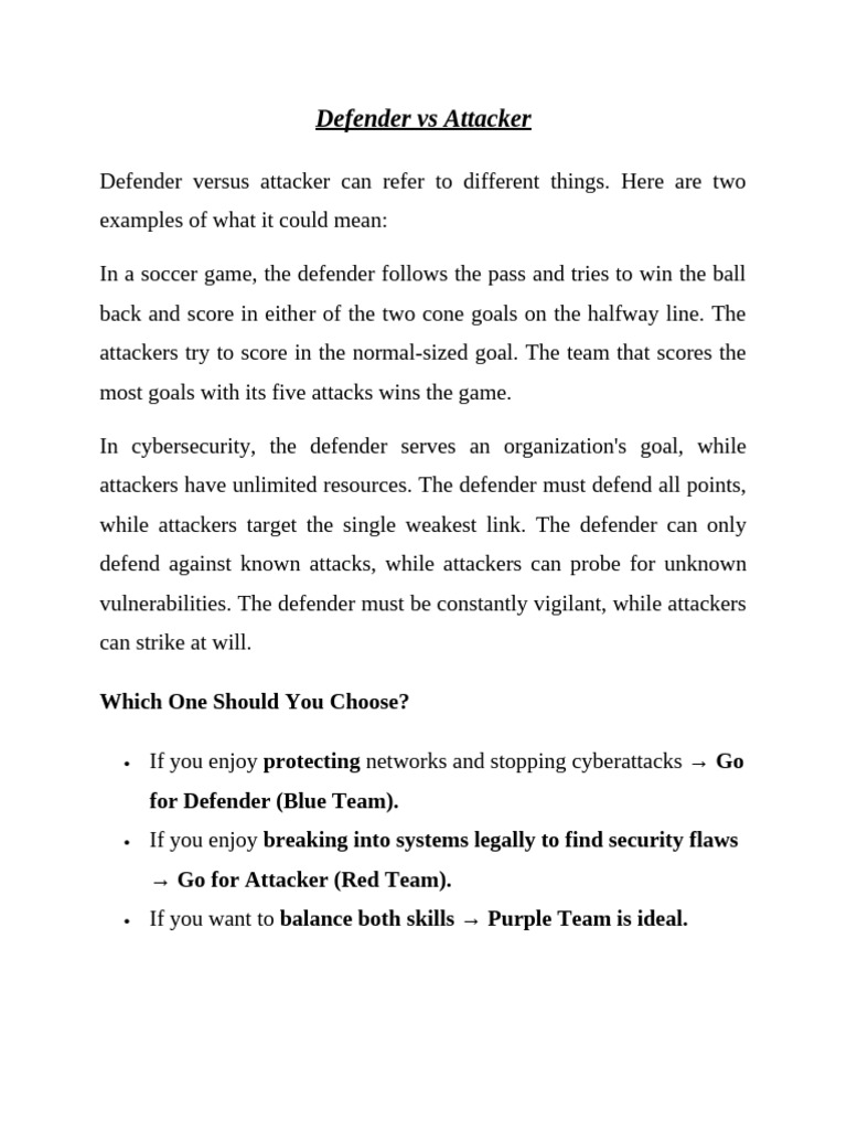Attackers (ethical hackers) specialize in offensive security—finding and