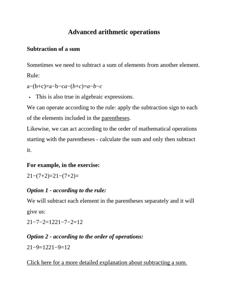 Subtraction of a sum