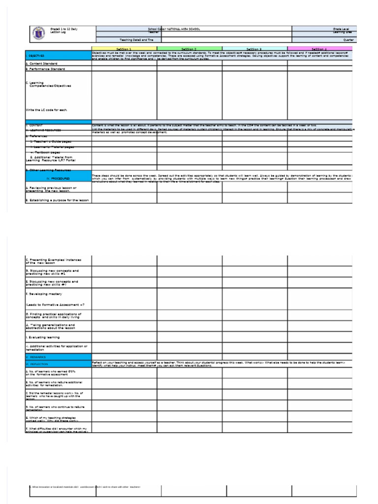 Objectives must be met over the week and connected to the curriculum standards. To meet the objectives# necessary procedures must be followed and if needed# additional lessons#