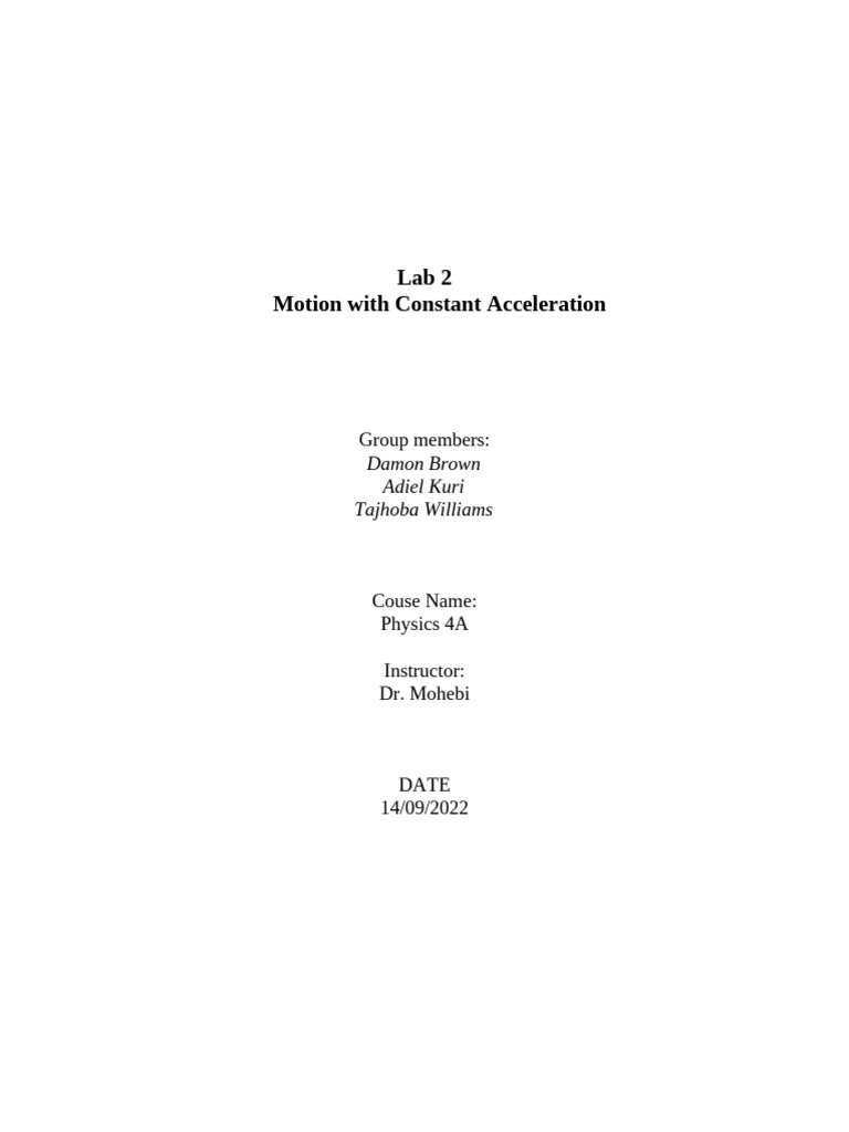 The objective of this experiment was to calculate the acceleration of a rolling object with