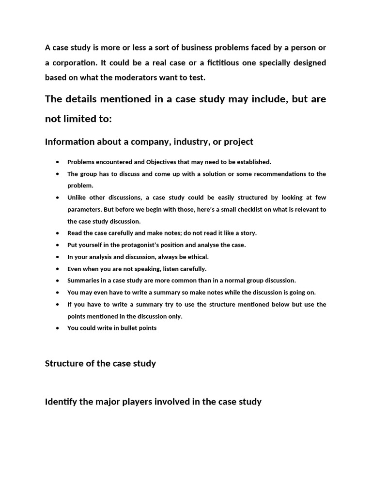 Cases involve real base situations for which a candidate is provided with a set of facts about business