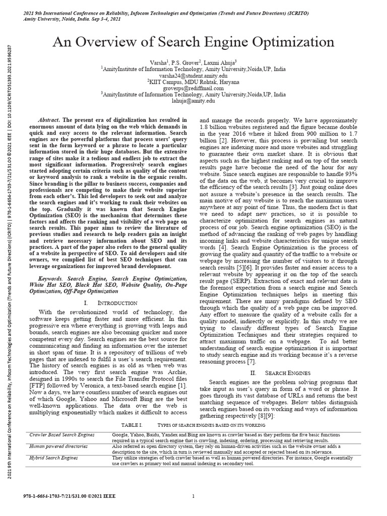 [10] Khanna S, Vivekanand O "Concept of Search Engine Optimization in