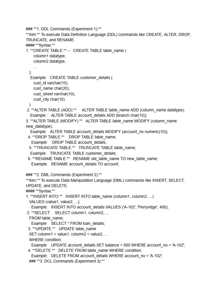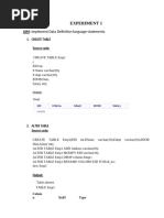 **Aim:** To execute Data Definition Language (DDL) commands like CREATE, ALTER, DROP,