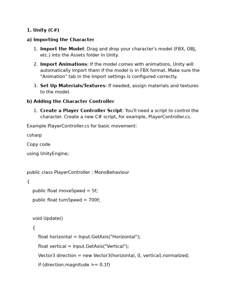 character. Create a new C# script, for example, PlayerController.cs.