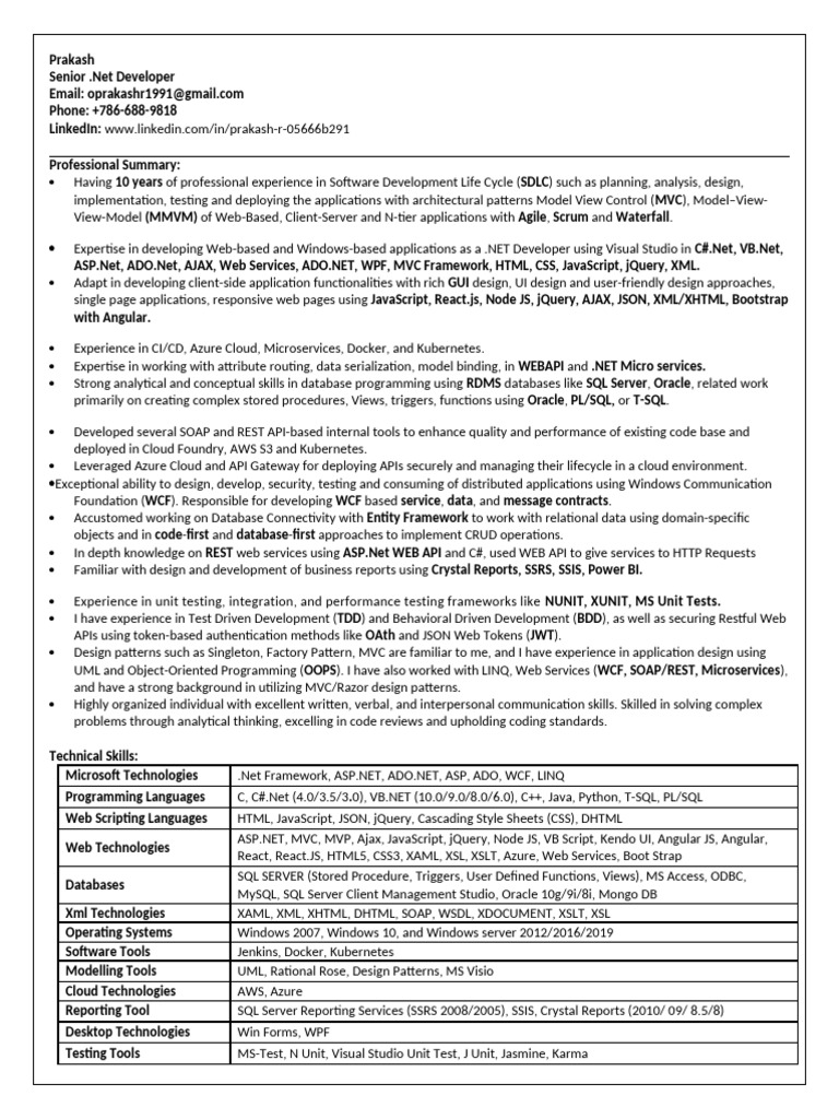 UML and Object-Oriented Programming (OOPS). I have also worked with LINQ, Web Services (WCF, SOAP/REST, Microservices),