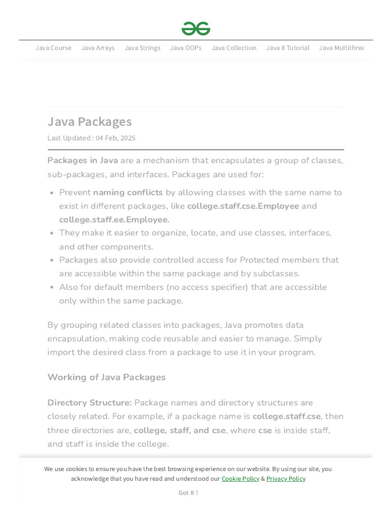 Packages in Java are a mechanism that encapsulates a group of classes,