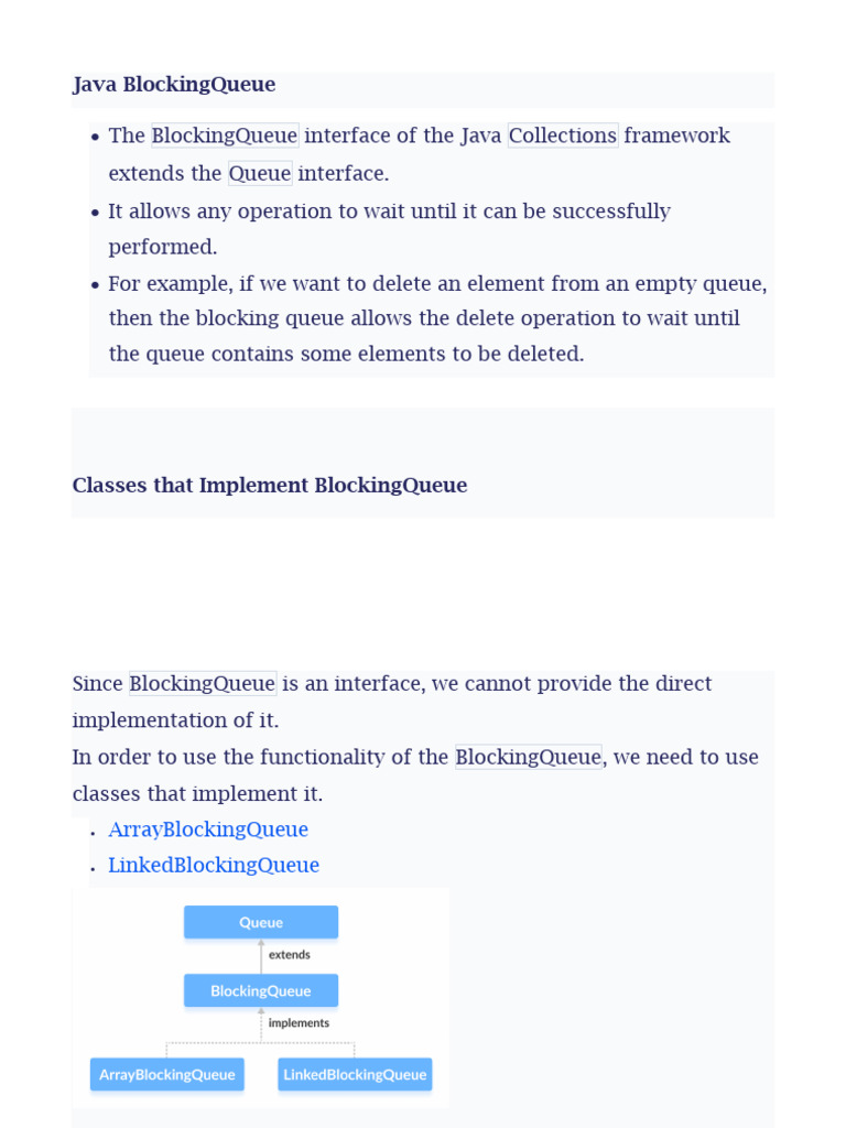 • The BlockingQueue interface of the Java Collections framework