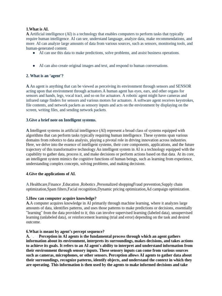 A.Artificial intelligence (AI) is a technology that enables computers to perform tasks that typically