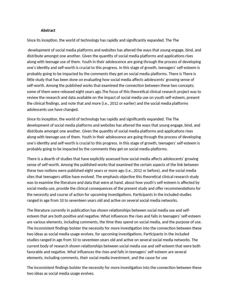 was to examine the literature and data that were at hand. about how youth's self-esteem is affected by