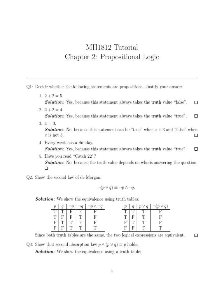 Solution: Yes, because this statement always takes the truth value “true”.