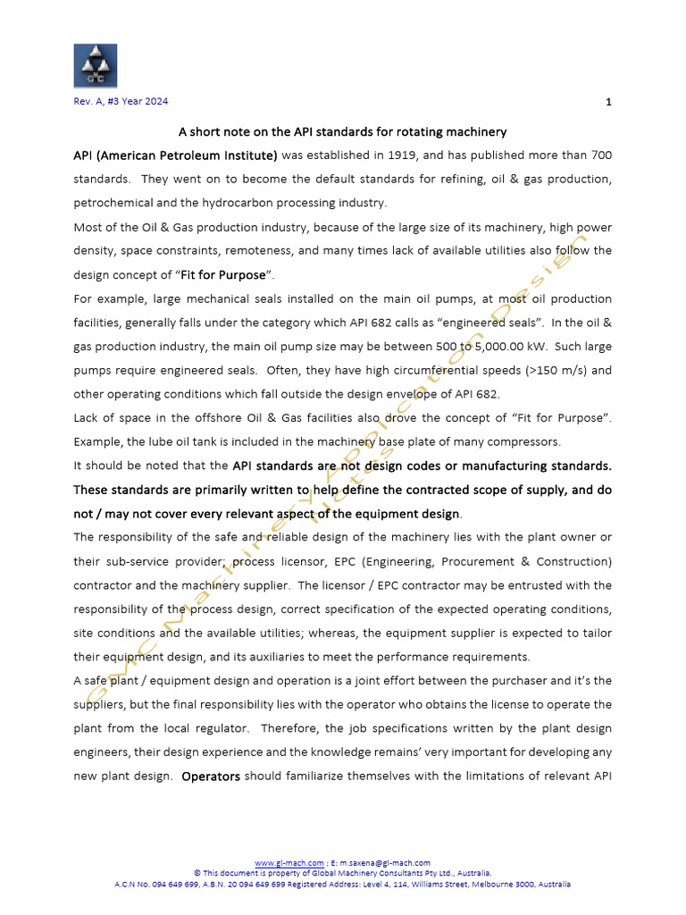 A short note on the API standards for rotating machinery