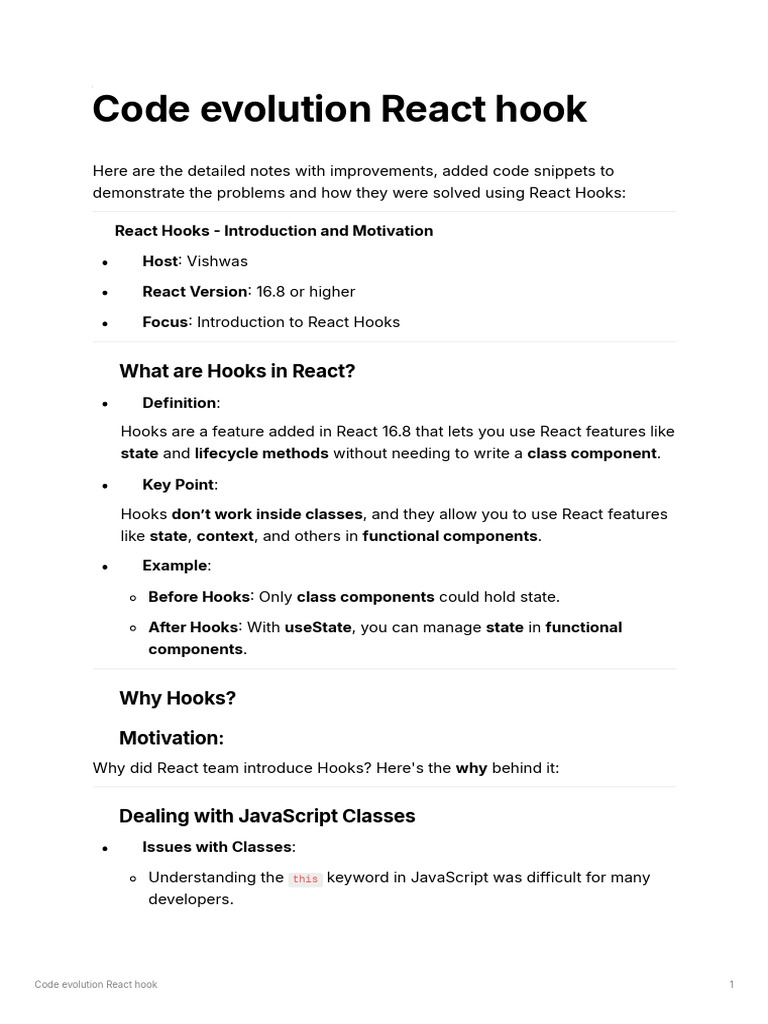 1. Hooks: A new feature in React 16.8 that allows you to use React