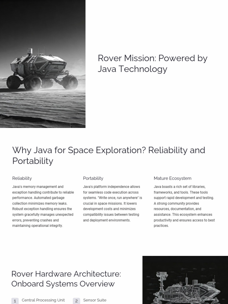 Java's capabilities extend beyond rover missions. Its reliability, portability, and mature ecosystem make it suitable for satellite