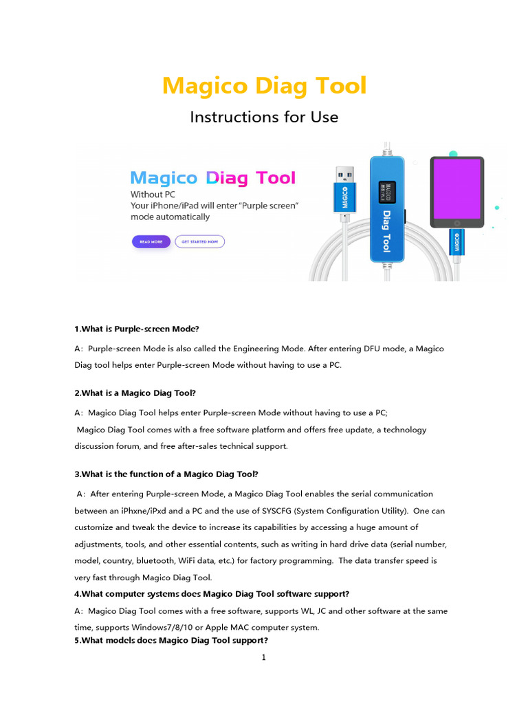 A:Magico Diag Tool helps enter Purple-screen Mode without having to use a PC;