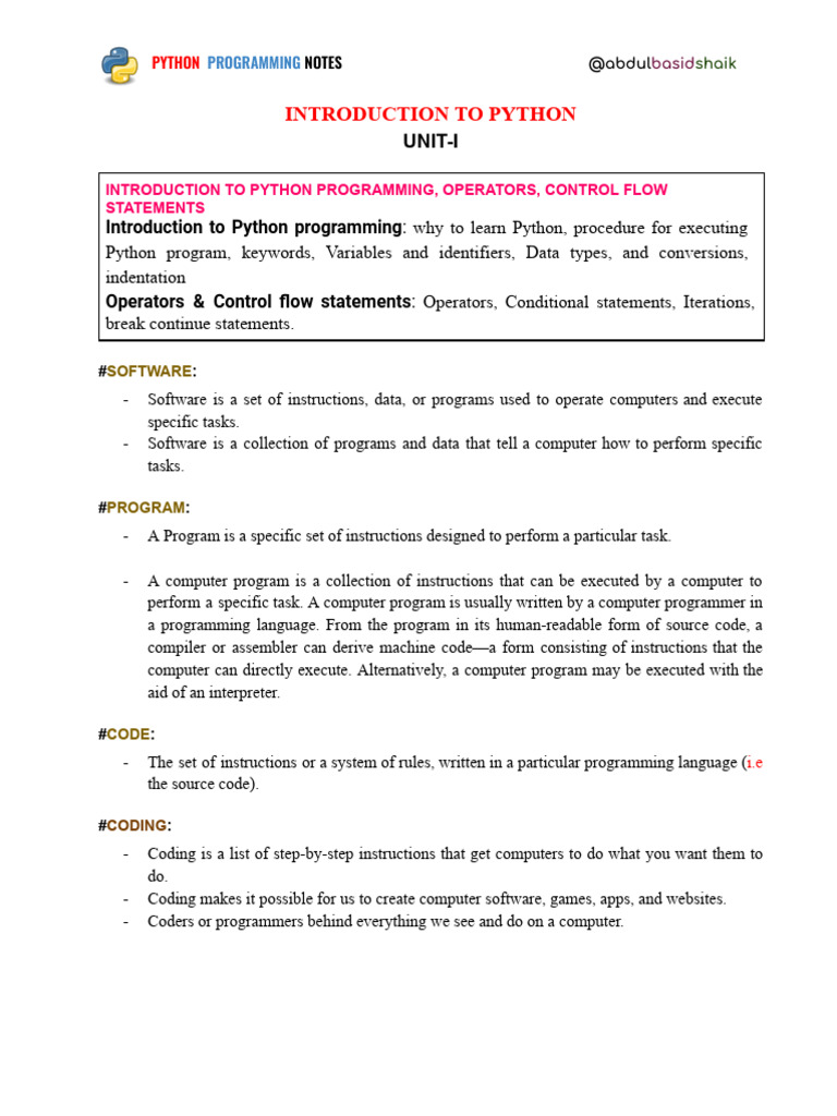PYTHON PROGRAMMING NOTES @abdulbasidshaik