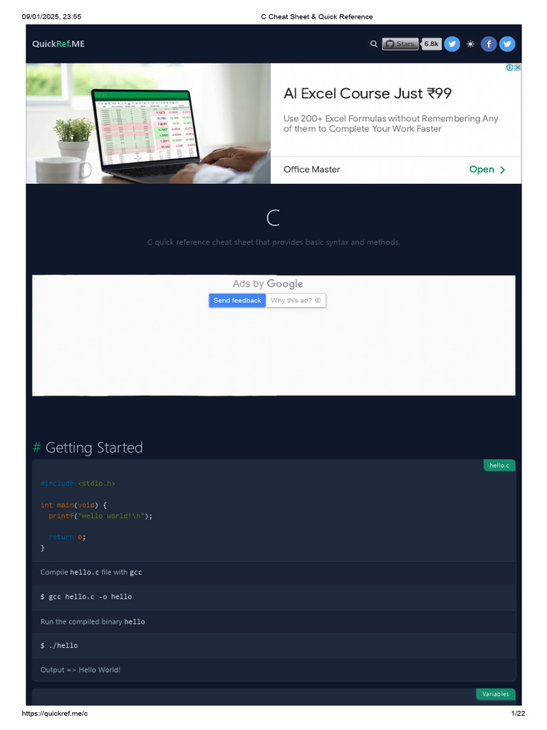 09/01/2025, 23:55 C Cheat Sheet & Quick Reference