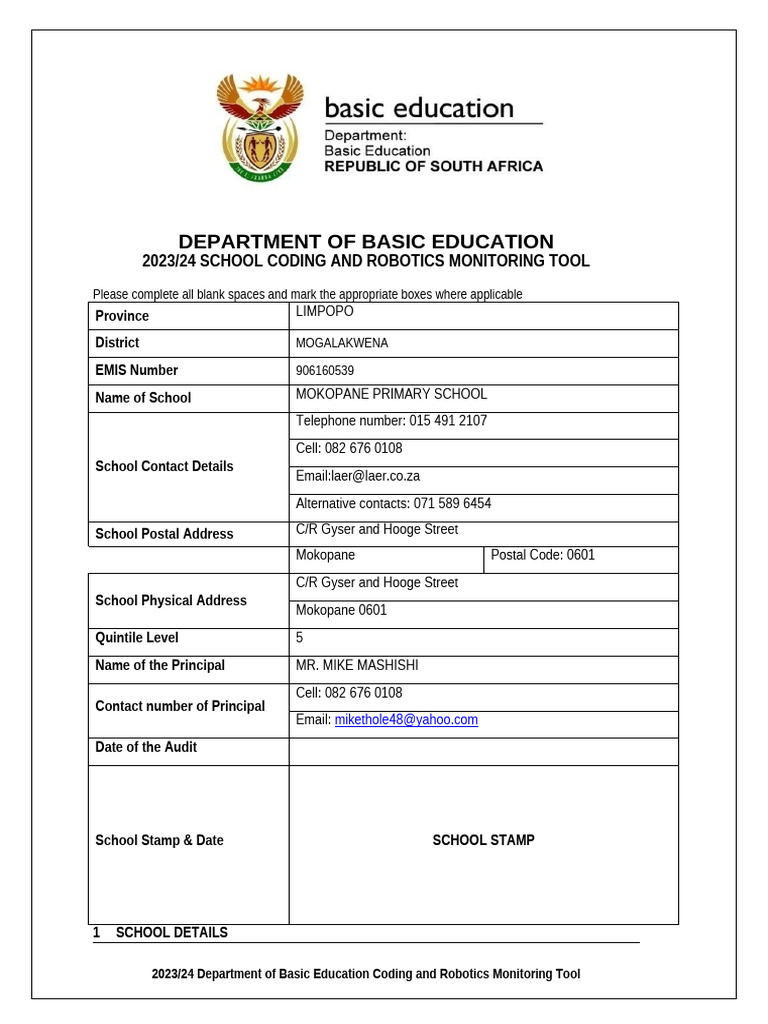 2023/24 Department of Basic Education Coding and Robotics Monitoring Tool