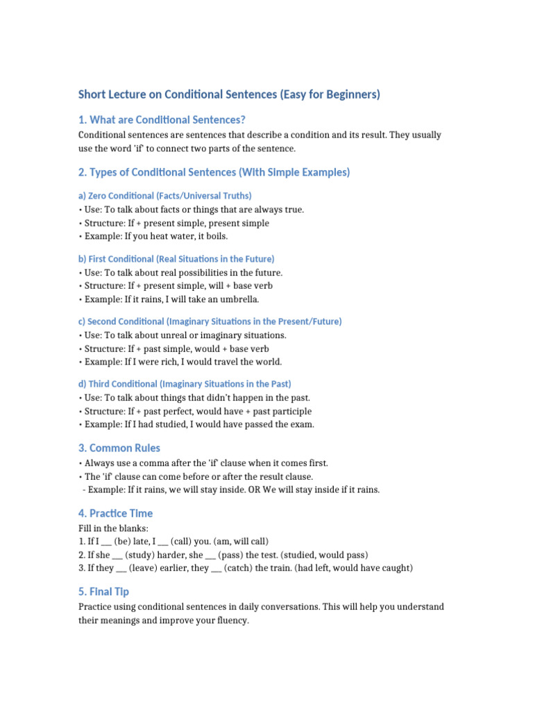 Short Lecture on Conditional Sentences (Easy for Beginners)