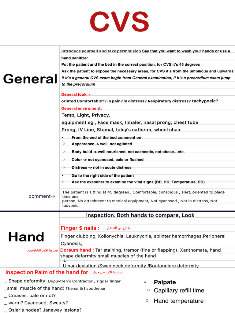 General If it’s a general CVS exam begin from General examination, if it’s a precordium exam jump
