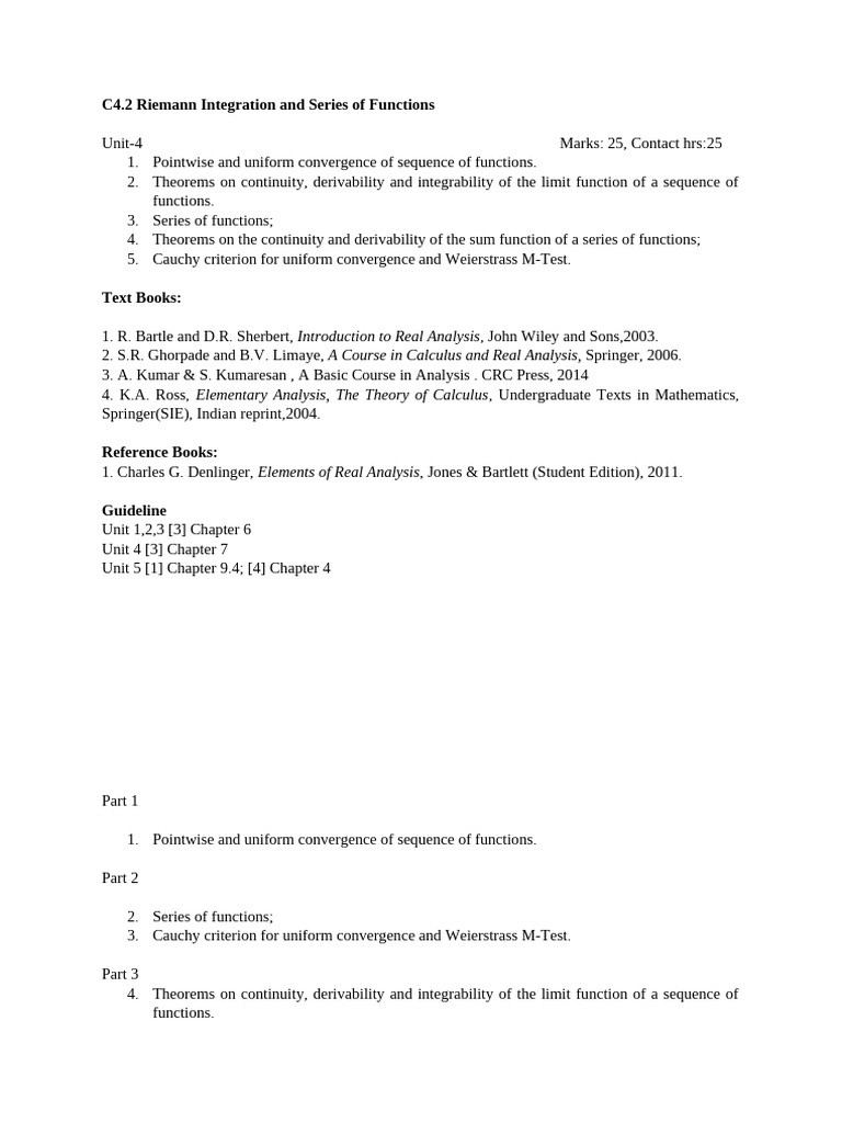 1. R. Bartle and D.R. Sherbert, Introduction to Real Analysis, John Wiley and Sons,2003.