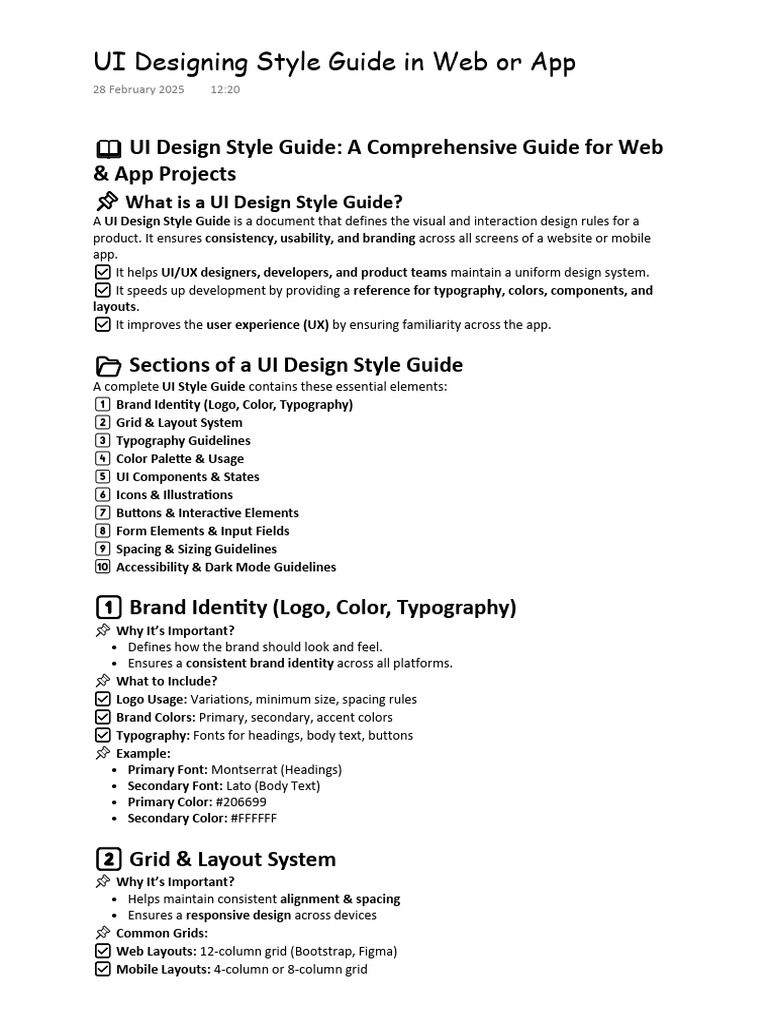 A UI Design Style Guide is a document that defines the visual and interaction design rules for a