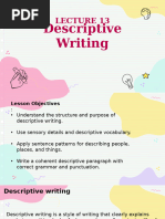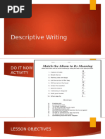 Instructions: When writing descriptively, use the five senses—sight, sound,