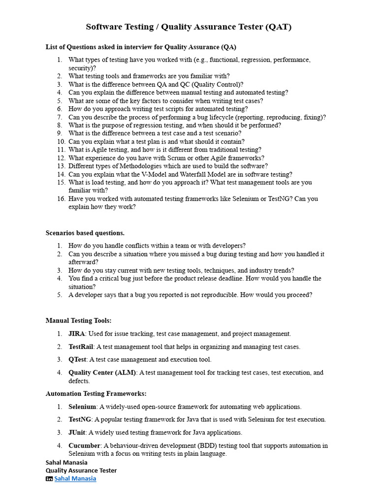 1. What types of testing have you worked with (e.g., functional, regression, performance,