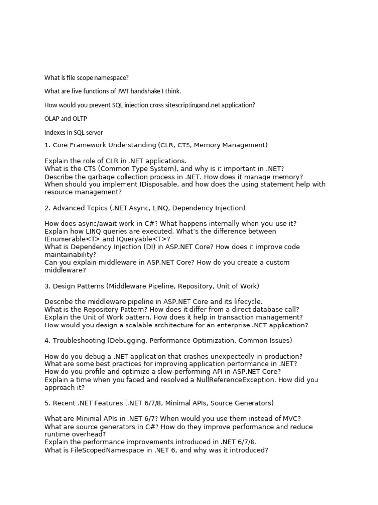 1. Core Framework Understanding (CLR, CTS, Memory Management)