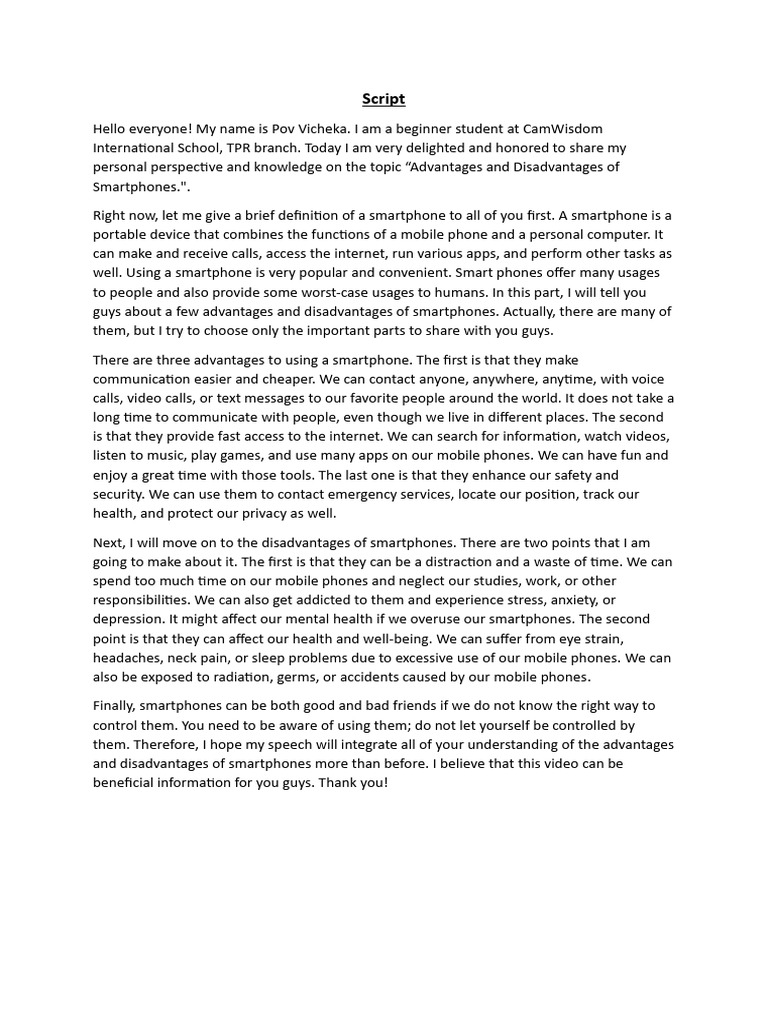 Hello everyone! My name is Pov Vicheka. I am a beginner student at CamWisdom
