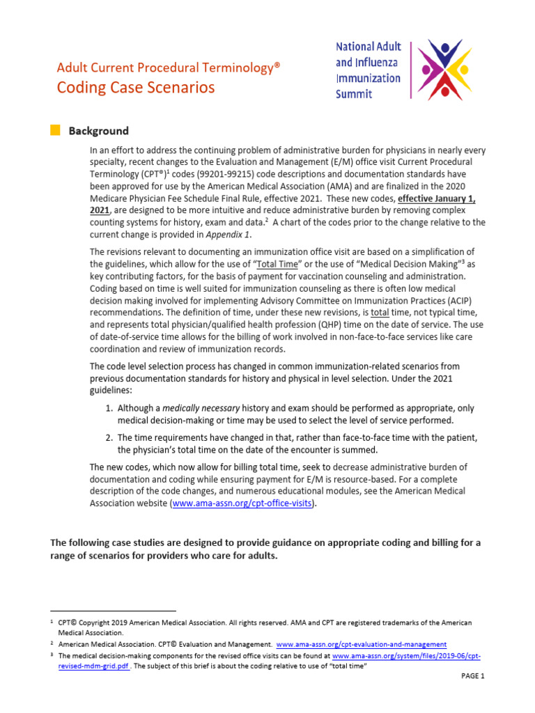 NB: The issues around additional and separate payment for vaccine counseling and vaccination
