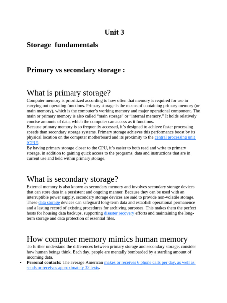 carrying out operating functions. Primary storage is the means of containing primary memory (or