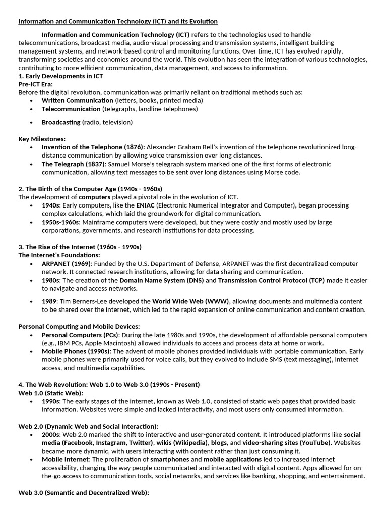 The evolution of ICT has been a journey from simple communication methods to the highly interconnected, digitalized