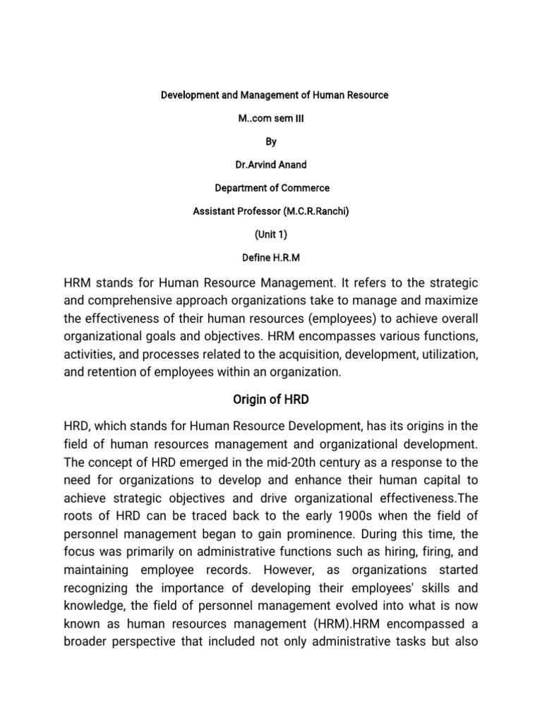 a distinct field in the 1970s. HRD expanded the scope of HRM by