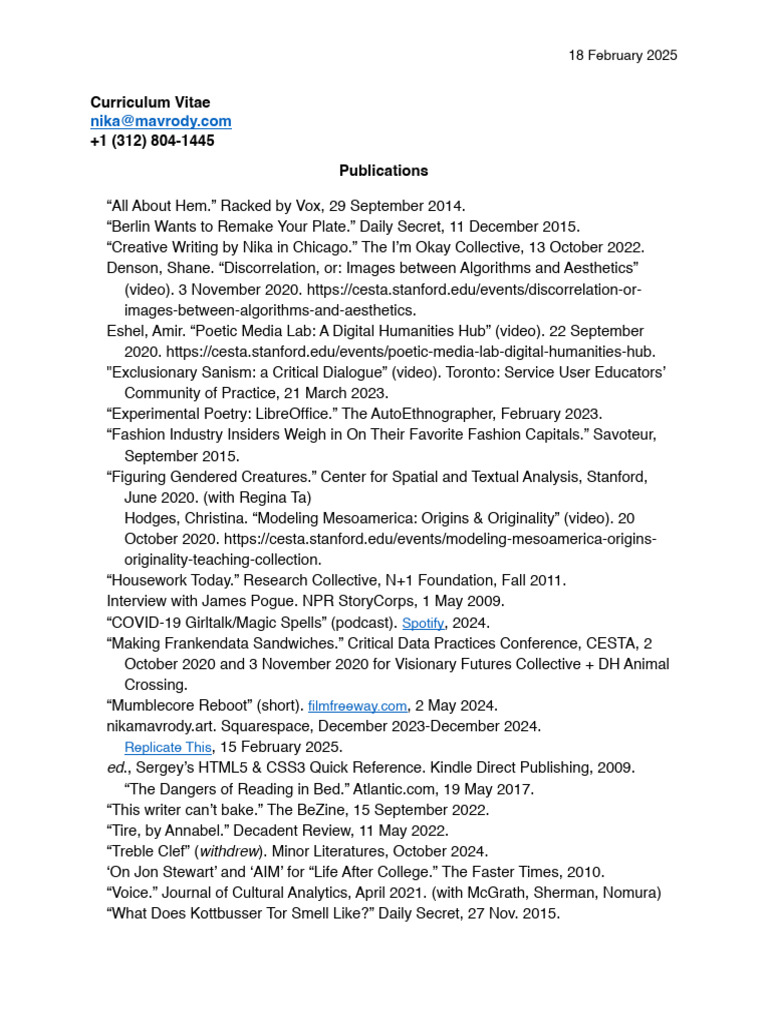Curriculum Vitae +1 (312) 804-1445 Publications: 18 February 2025