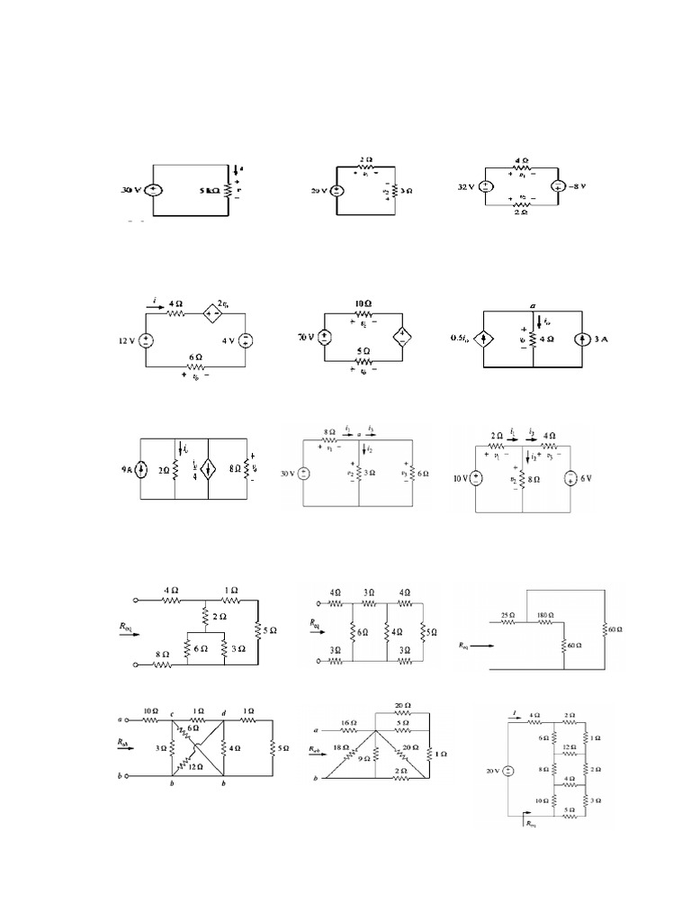 19. Find node voltages in i) Fig. 36 ii) Fig. 37 iii) Fig. 38 iv) Fig. 39 v) Fig. 40.