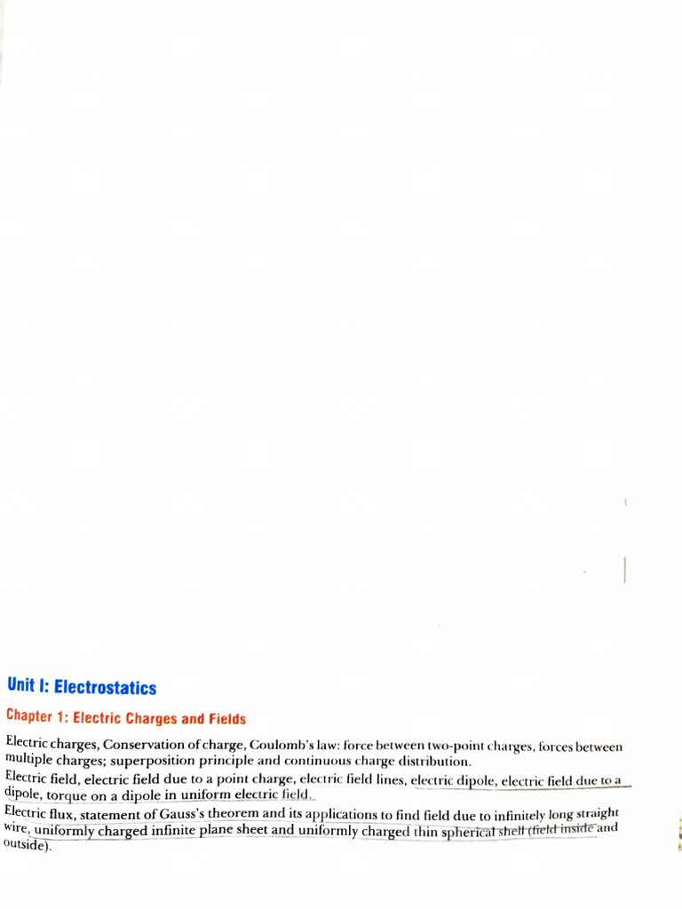 only), torque on a magneticdipole (bar magnet) in a uniform magnetic field (qualitaive treatment only).