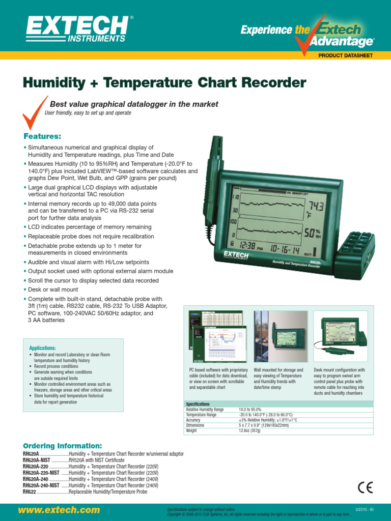 RH520A ........................Humidity + Temperature Chart Recorder w/universal adaptor