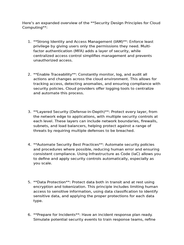 Here’s an expanded overview of the **Security Design Principles for Cloud