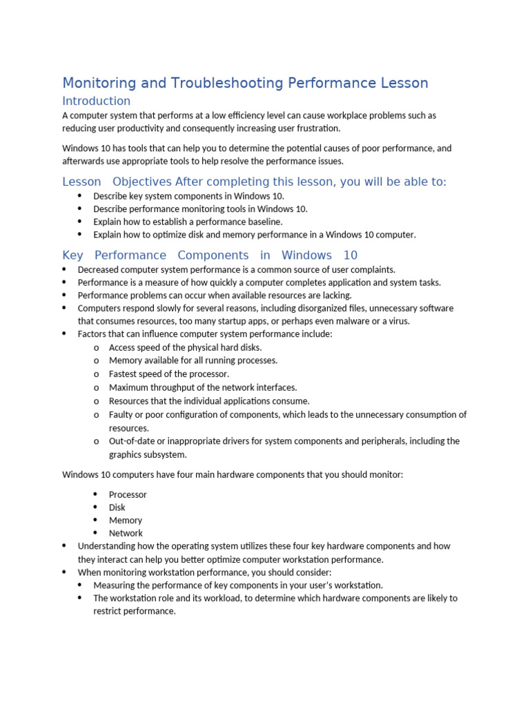 Windows 10 has tools that can help you to determine the potential causes of poor performance, and