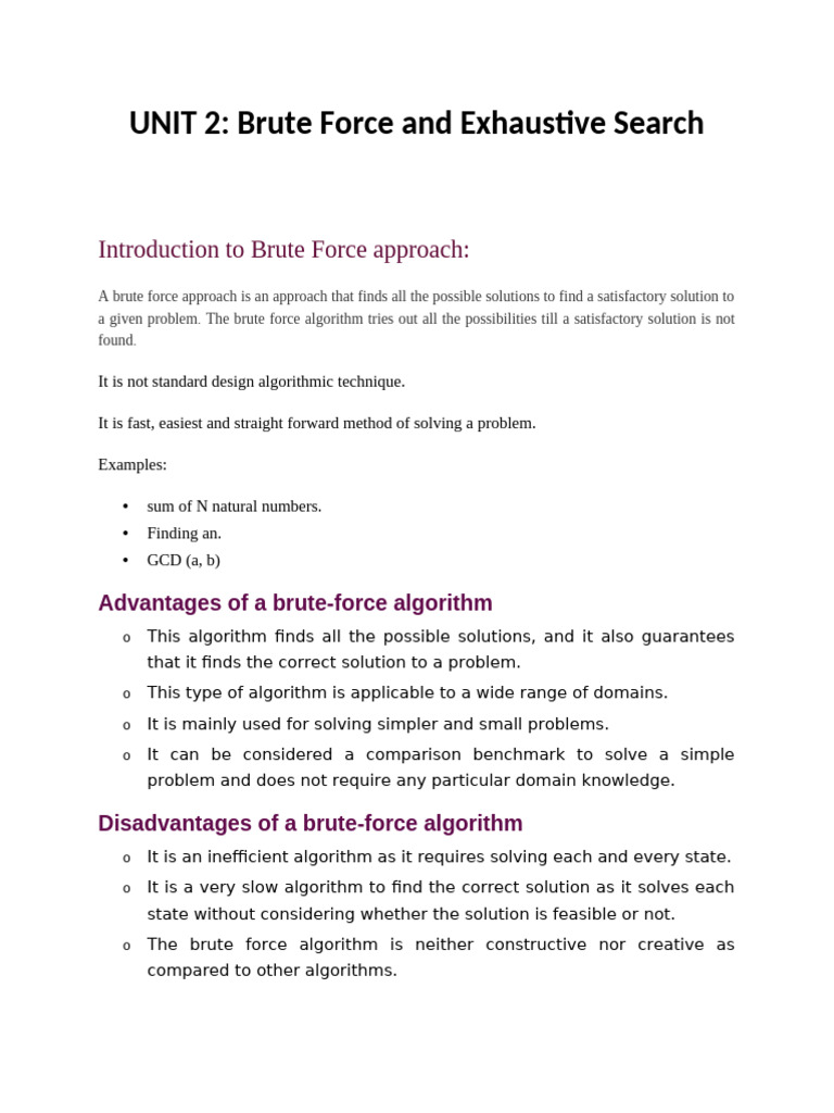a given problem. The brute force algorithm tries out all the possibilities till a satisfactory solution is not