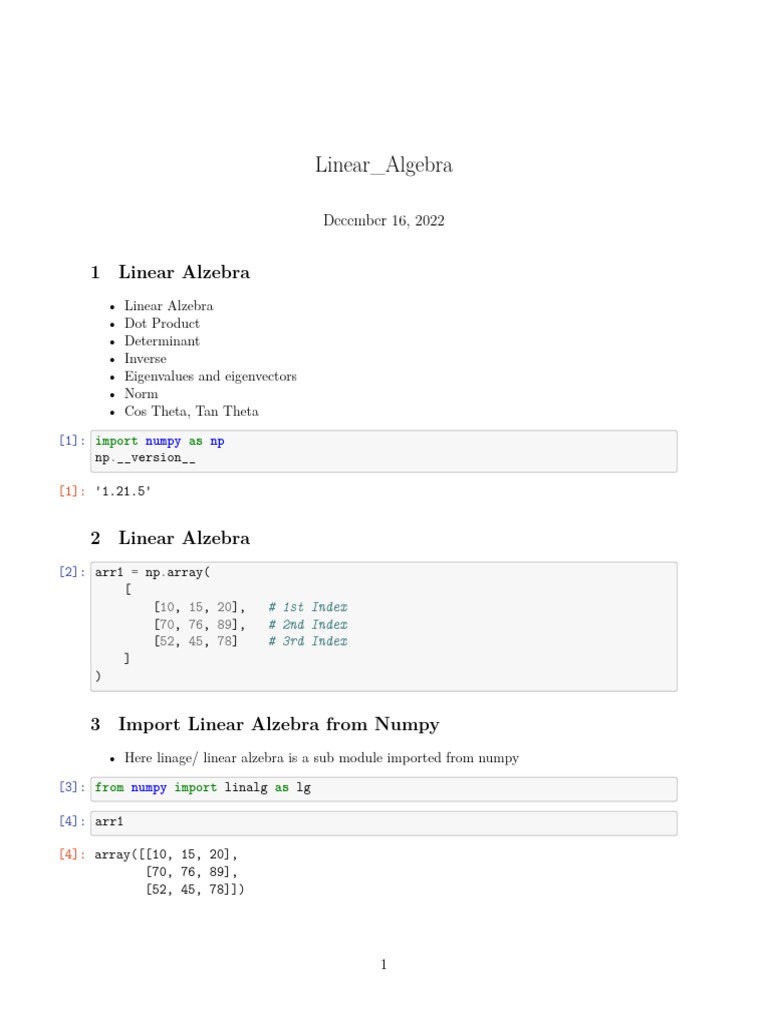• Here linage/ linear alzebra is a sub module imported from numpy