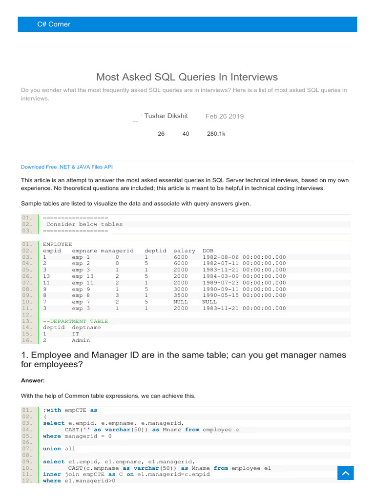 This article is an attempt to answer the most asked essential queries in SQL Server technical interviews, based on my own