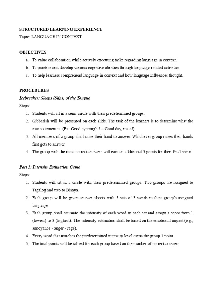 2. Facilitators will give each group a paper filled with Tagalog and Bisaya words that the