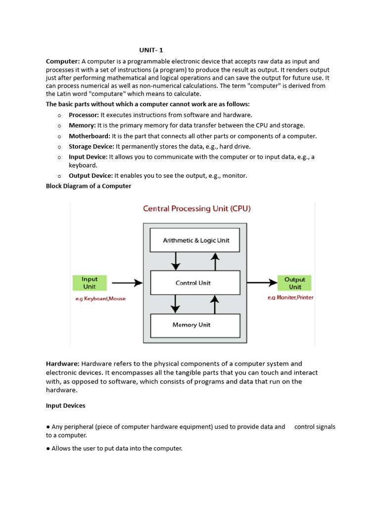 Computer: A computer is a programmable electronic device that accepts raw data as input and