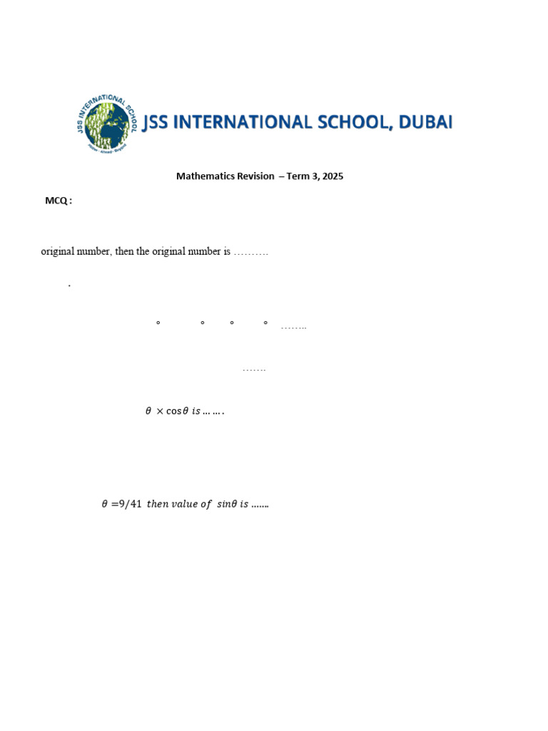 Mathematics Revision – Term 3, 2025