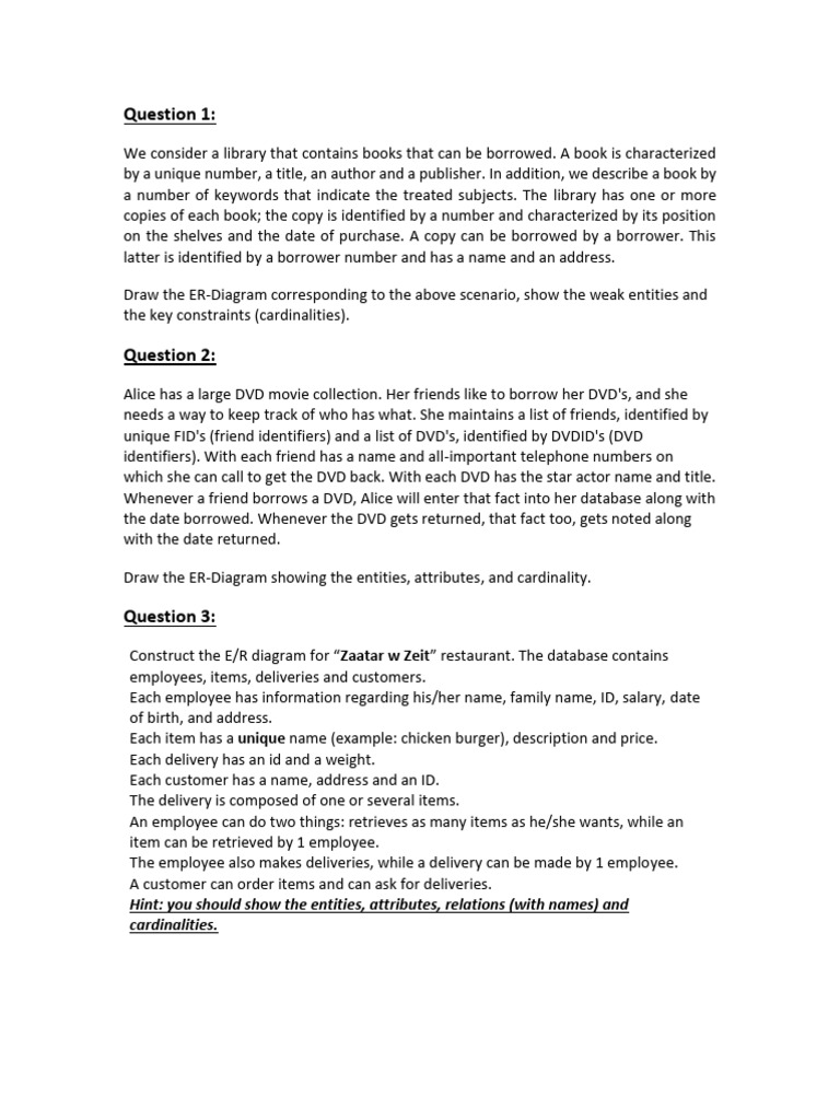1. Draw an ER diagram that captures the preceding information. Identify any