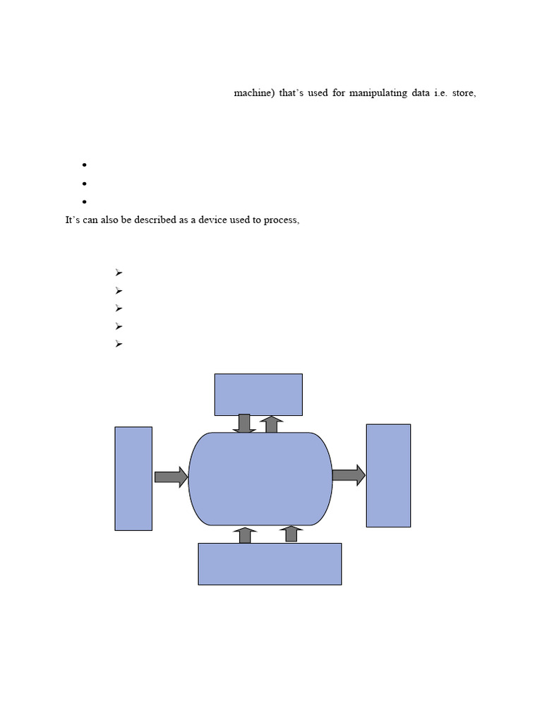 A computer is an electronic device (machine) that’s used for manipulating data i.e. store,