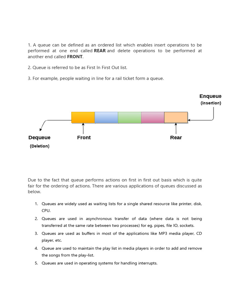 (First-In-First-Out) policy. Queue can also be defined as the list or collection in which