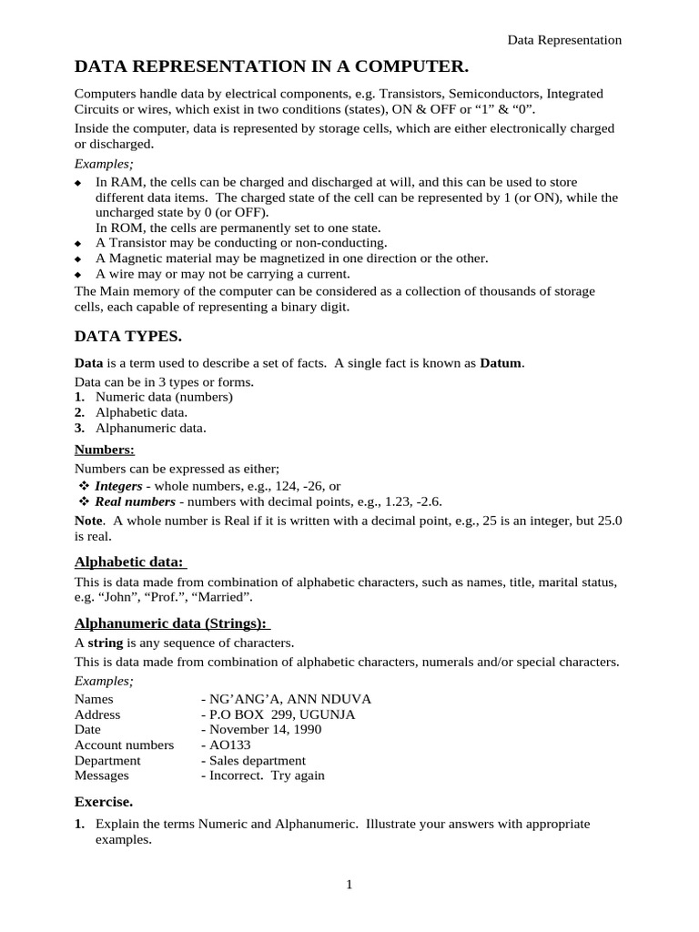 1. Data in a computer is represented in one major form. Define the term “Data representation”