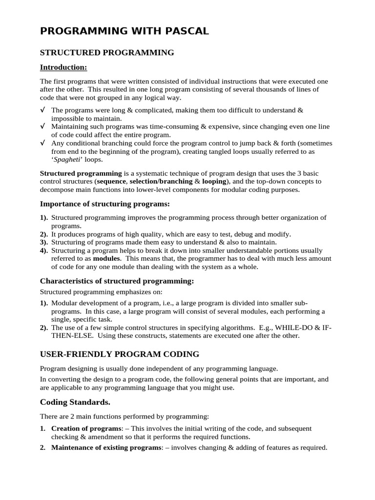1. What are the benefits of setting out rules to be followed while writing programs?